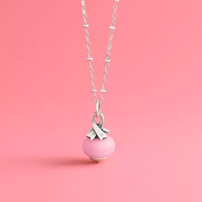 A symbol of comfort and strength, the awareness ribbon finial complements the pink art glass bead it adorns.