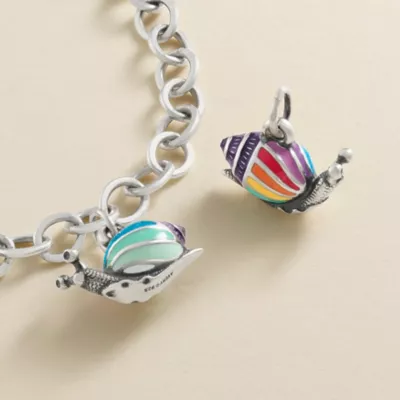 A whimsical addition to your bracelet that is sure to make others smile, this sterling silver, hand-enameled snail charm features several shades of vivid colors (blue, green, orange, purple, red, yellow and white) for a joyful, garden-inspired look. A reminder to slow down and appreciate the small things in life, it pairs well with other colorful, nature-themed designs.