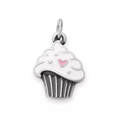This little cupcake charm gives our guests another sweet way to express their love. The flat back is perfect for engraving while the front features fluffy white icing enamel with little silver “sprinkles” and a pink heart. We especially like the pleated cupcake liner on the bottom!