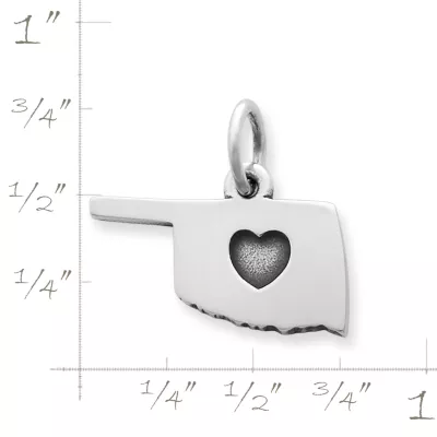 State pride is the cornerstone of this beautifully crafted sterling silver charm, with the outline of the state embracing an engraved heart at its center.