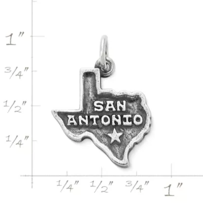 Express pride in the place you call home or remember a wonderful vacation with this Texas-shaped charm inscribed with “San Antonio.” A flat surface on the back is perfect for engraving dates and other special Alamo City memories.